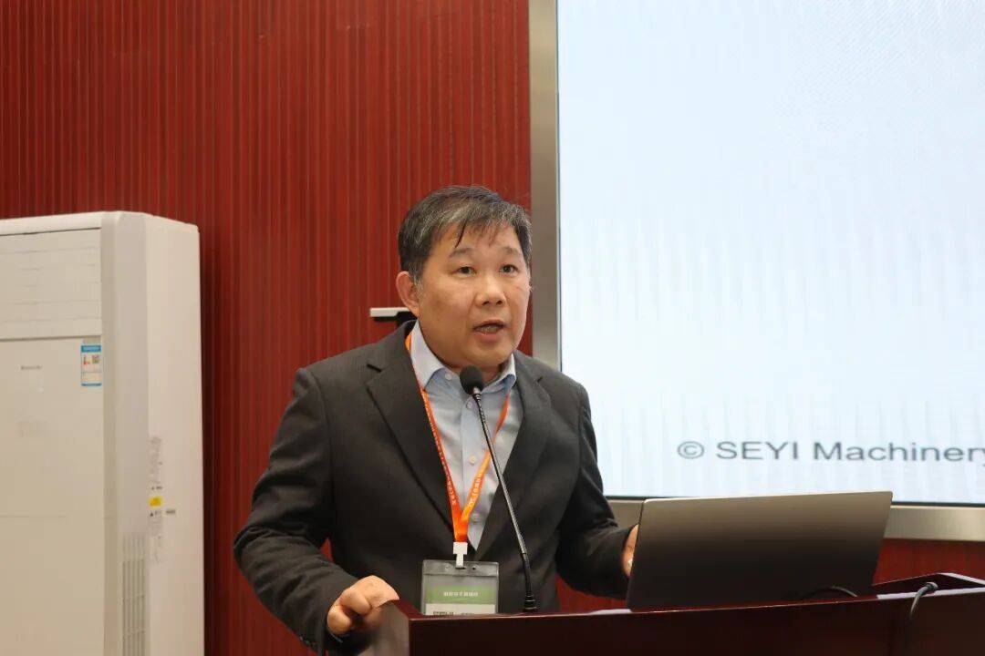 技术交流环节中,行业专家与企业代表带来了干货满满的精彩分享。联盟总顾问赵升吨教授深耕伺服压力机技术领域多年,他详细介绍了63MN体积成形用伺服压力机的核心成果:该设备采用 4 电机分散动力双边对称驱动 WW 轮系的新型传动方式,总电机功率 800kW(单个主驱动电机 200kW);机身采用多个剖分嵌合块组合钢丝缠绕设计,钢丝平均应力 672.165MPa、层数50,工作状态下机身最大等效应力 259.14MPa、垂直刚度46419kN/mm;配套的钢丝缠绕式电子飞轮储能量 3.97kWh,储能密度较主流金属飞轮提升 20.8%;同时搭载额定功率 200kW 的外转子永磁同步储能电机,最高效率达98%。该设备通过理论设计与有限元仿真验证,各项性能均满足高端成形需求,目前正面向行业寻求企业投资合作,加速技术产业化落地。